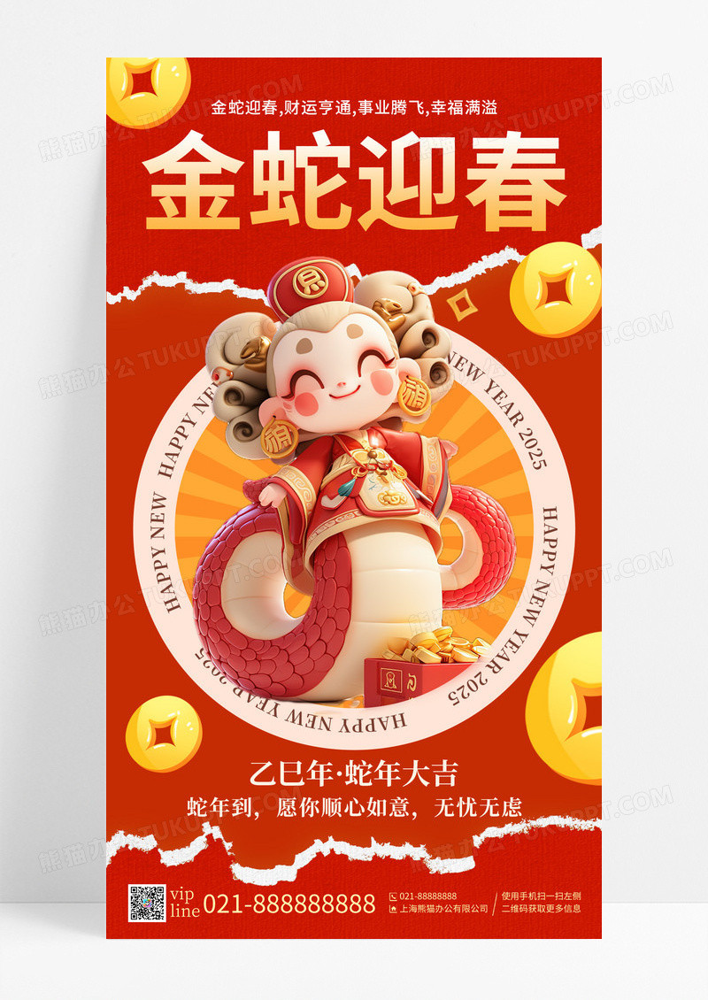 本作品为红色插画风2025金蛇迎春蛇年新年手机宣传海报, 编号:417oovgb39, 格式为 psd, 大小16 MB, 本作品下载后,先解压,解压之后用推荐软件 PhotoShop() 打开, 然后进行编辑功能。