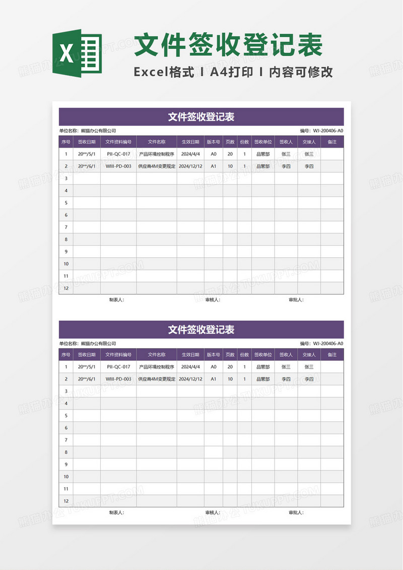 简洁通用文件签收登记表excel模板 简洁通用文件签收登记表excel模板 简洁通用文件签收登记表excel模板