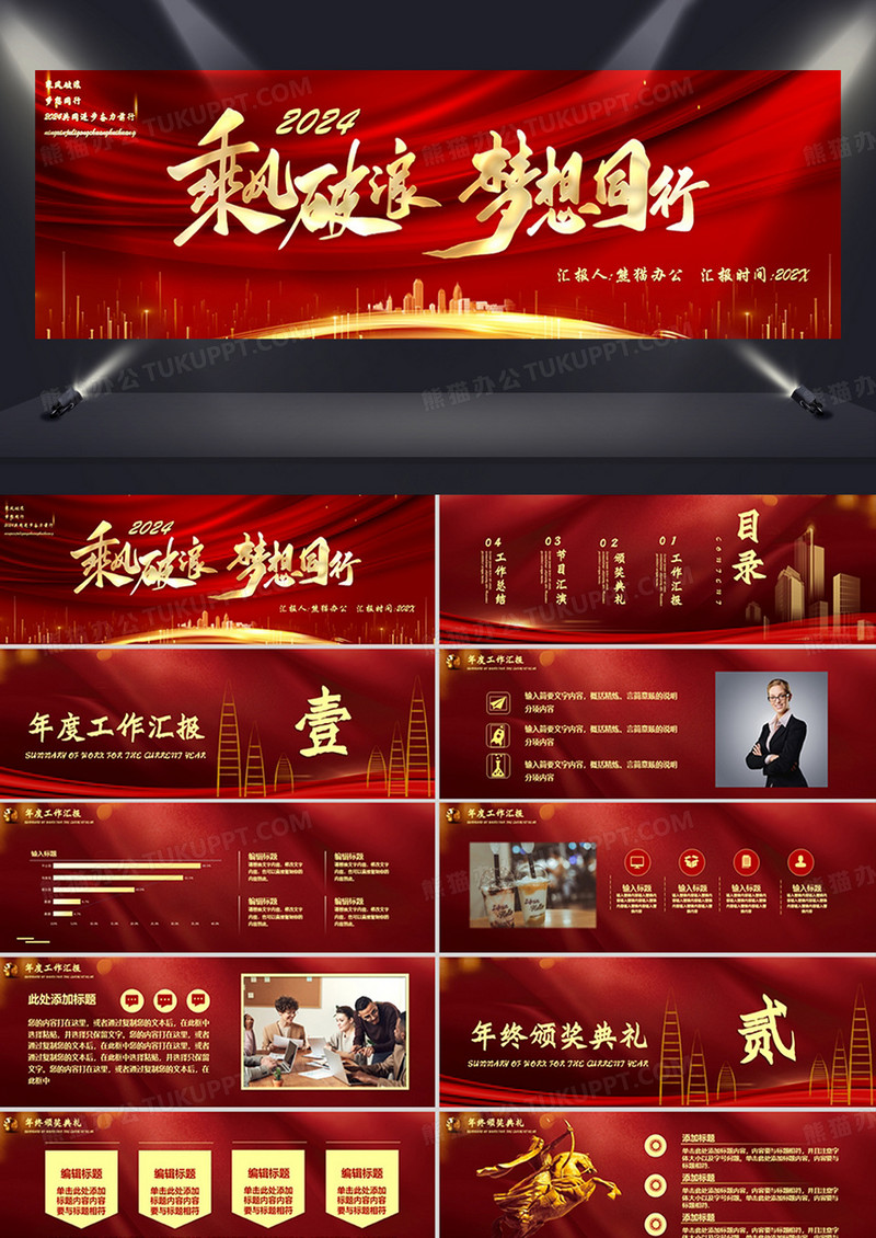 本作品为2024乘风破浪梦想同行企业年会典礼PPT模板, 编号:b1qy4q5569, 格式为 pptx, 大小34 MB, 本作品下载后,先解压,解压之后用推荐软件 PowerPoint(2019) 打开, 然后进行编辑功能。