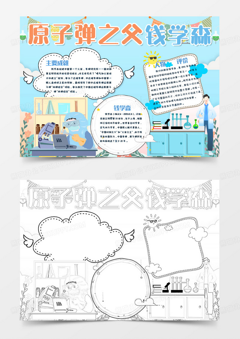 本作品为蓝色卡通原子弹之父钱学森小报Word模板, 编号:b1qy675ld9, 格式为 docx, 大小7 MB, 本作品下载后,先解压,解压之后用推荐软件 Word(2016) 打开, 然后进行编辑功能。