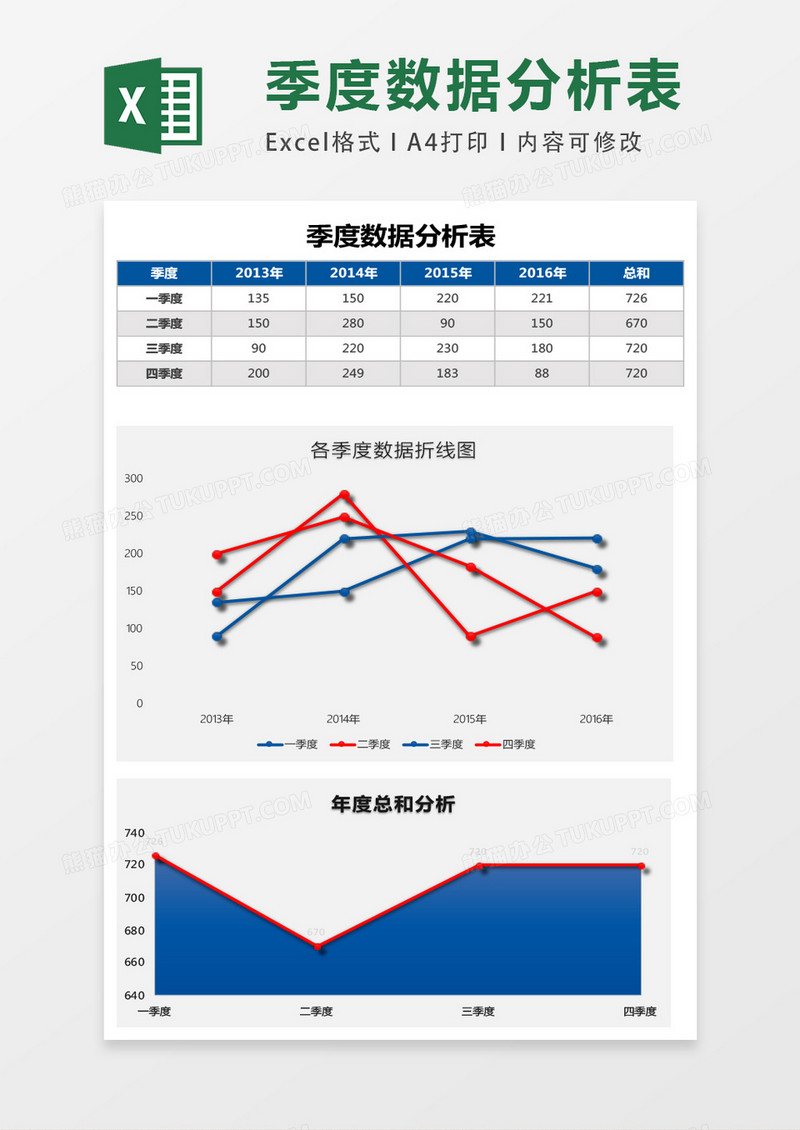 本作品为各年度按季度数据分析表excel模板, 编号:bad5r5l6y9, 格式为 xlsx, 大小1 MB, 本作品下载后,先解压,解压之后用推荐软件 Excel(2016) 打开, 然后进行编辑功能。