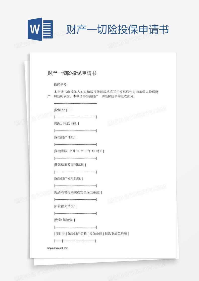 本作品为财产一切险投保申请书, 编号:bad5wm4k79, 格式为 docx, 大小1 MB, 本作品下载后,先解压,解压之后用推荐软件 Word(2010) 打开, 然后进行编辑功能。