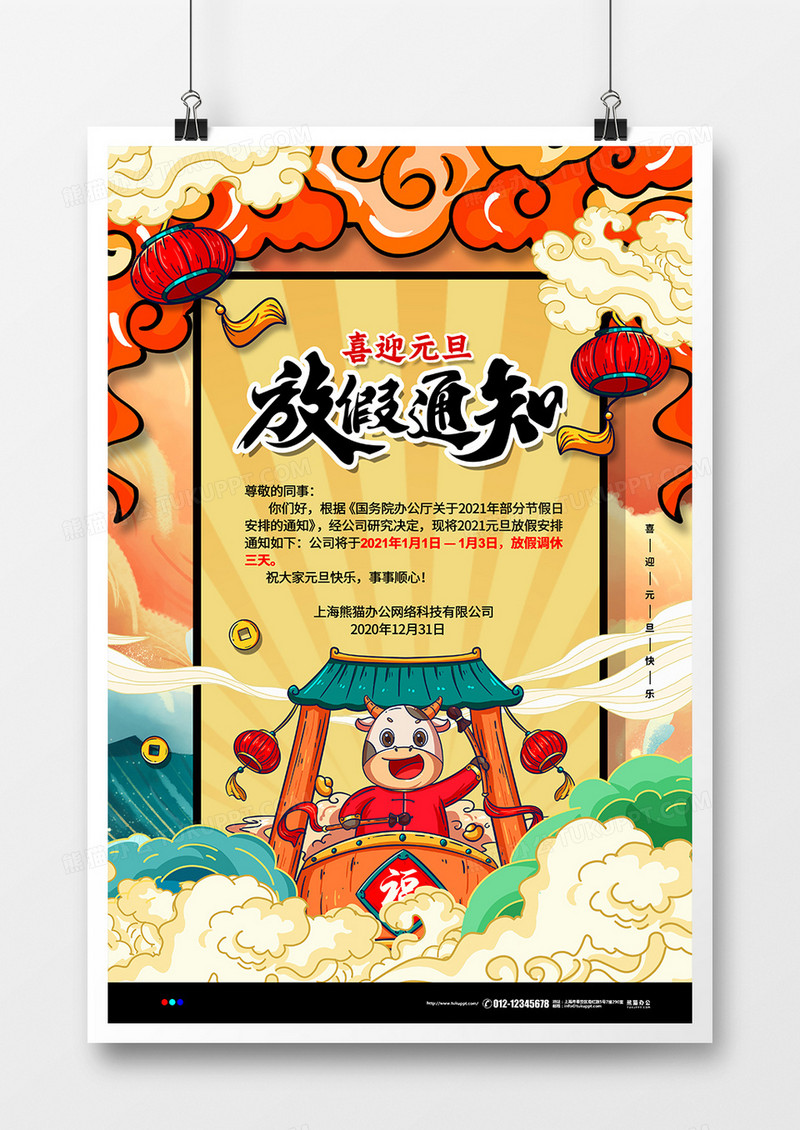 手绘国潮2021元旦放假通知宣传海报设计 手绘国潮2021元旦放假通知宣传海报设计 手绘国潮2021元旦放假通知宣传海报设计