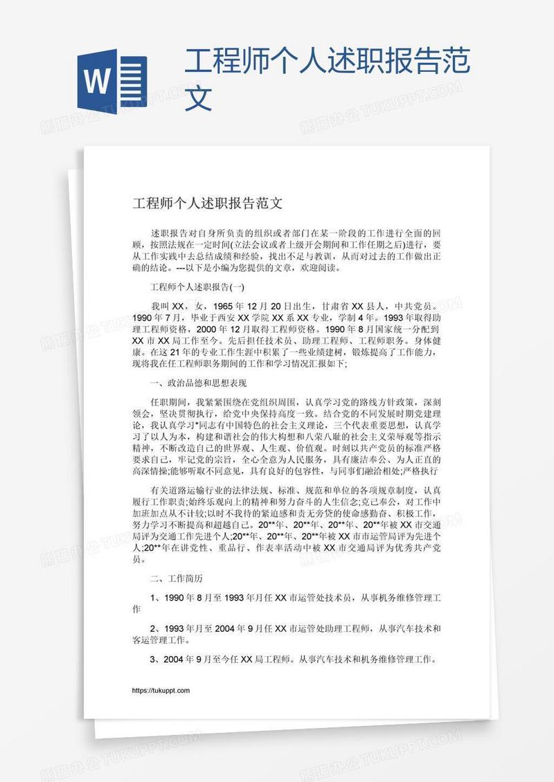 本作品为工程师个人述职报告范文, 编号:k1b2kmdb81, 格式为 docx, 大小1 MB, 本作品下载后,先解压,解压之后用推荐软件 Word(2010) 打开, 然后进行编辑功能。