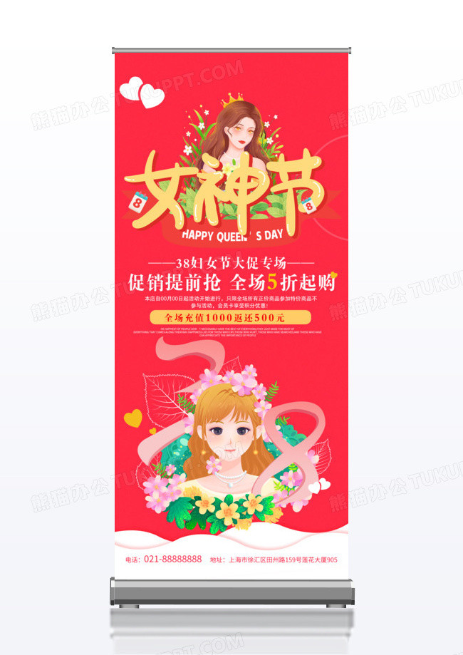 本作品为红色卡通38女神节妇女节x展架易拉宝, 编号:k1bmm76qb9, 格式为 psd, 大小272 MB, 本作品下载后,先解压,解压之后用推荐软件 PhotoShop(CC) 打开, 然后进行编辑功能。